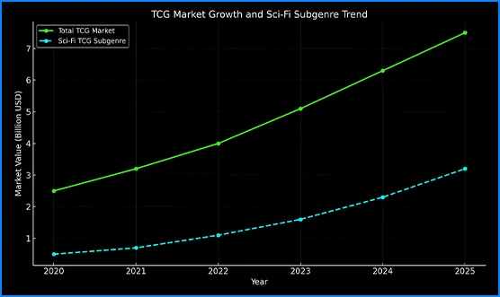 The TCG market is booming, with sci-fi themes offering unique opportunities. Starship Warbeasts combines strategy, art, and narrative to capture a dedicated player base. With 80% of the IP already visualized, we're ready to lead the next weave of sci-fi gaming.